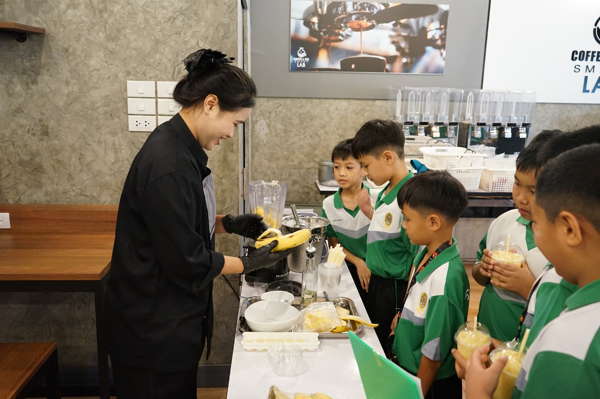ณ ห้องปฏิบัติการครัวร้อน และห้องปฏิบัติการชา/กาแฟ อาคารเรียนรวมวิทยาศาสตร์