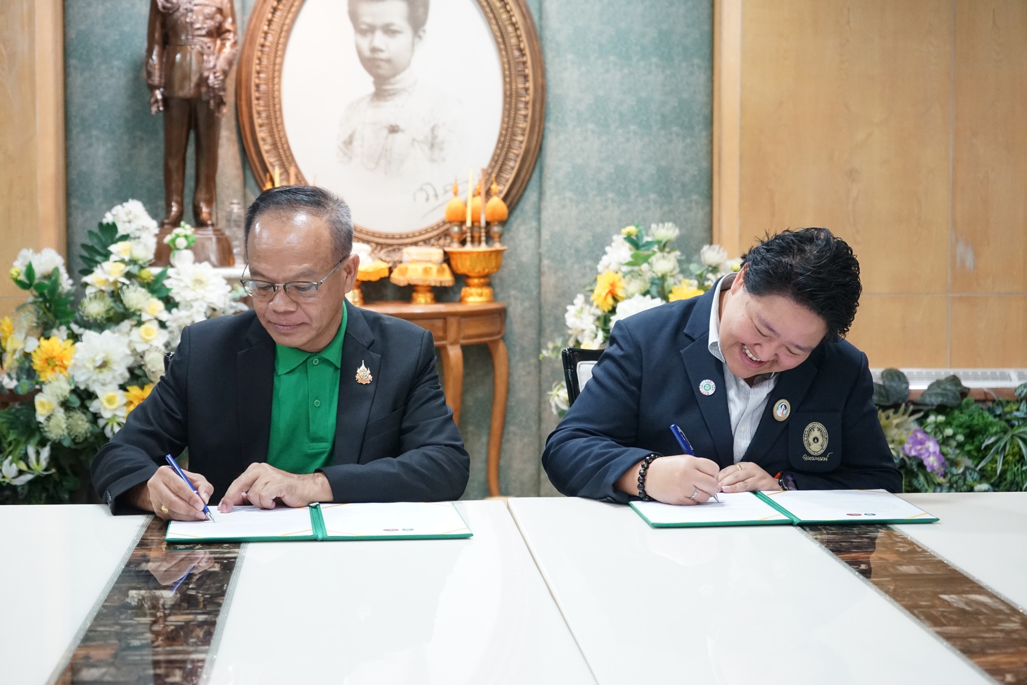 การลงนามบันทึกข้อตกลงความร่วมมือ (MOU) ระหว่างคณะวิทยาศาสตร์และเทคโนโลยี มหาวิทยาลัยราชภัฎวไลยอลงกรณ์ ในพระบรมราชูปถัมภ์ โดย รองศาสตราจารย์ ดร. นิสา พักตร์วิไล กับ สำนักงานสวัสดิการและคุ้มครองแรงงานจังหวัดปทุมธานี โดย นายโสภณ ปราบณรงค์ สวัสดิการและคุ้มครองแรงงานจังหวัดปทุมธานี