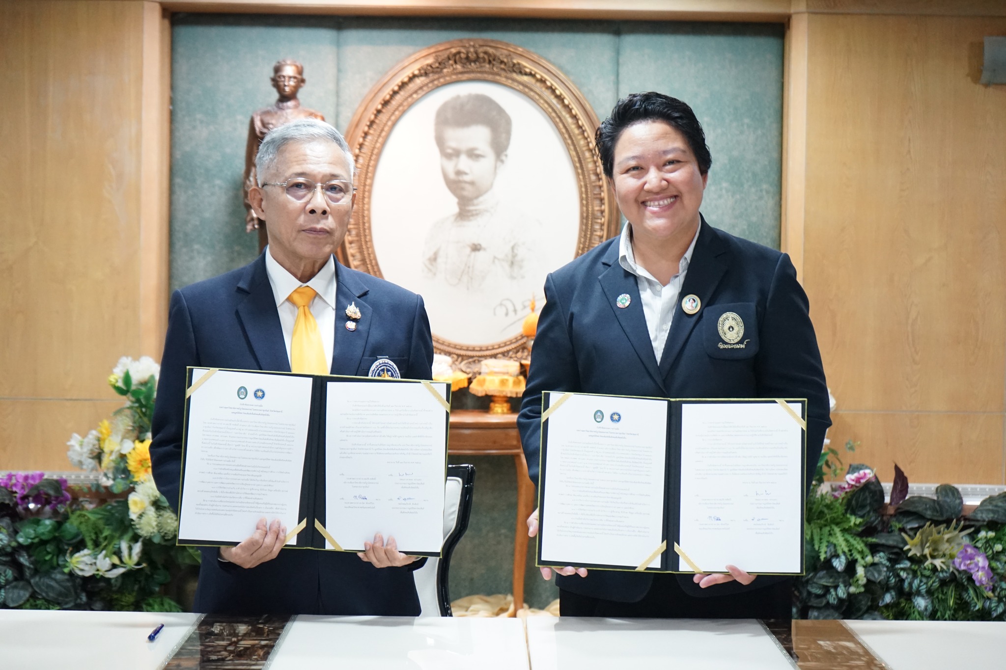 การลงนามบันทึกข้อตกลงความร่วมมือ (MOU) ระหว่างคณะวิทยาศาสตร์และเทคโนโลยี มหาวิทยาลัยราชภัฎวไลยอลงกรณ์ ในพระบรมราชูปถัมภ์ โดย รองศาสตราจารย์ ดร. นิสา พักตร์วิไล กับ มูลนิธิสตาร์สะเต็มส์เพื่อสังคมสันติสุขยั่งยืน โดย พลเอก ดร.พหล สง่าเนตร ประธานมูลนิธิสตาร์สะเต็มส์เพื่อสังคมสันติสุขยั่งยืน