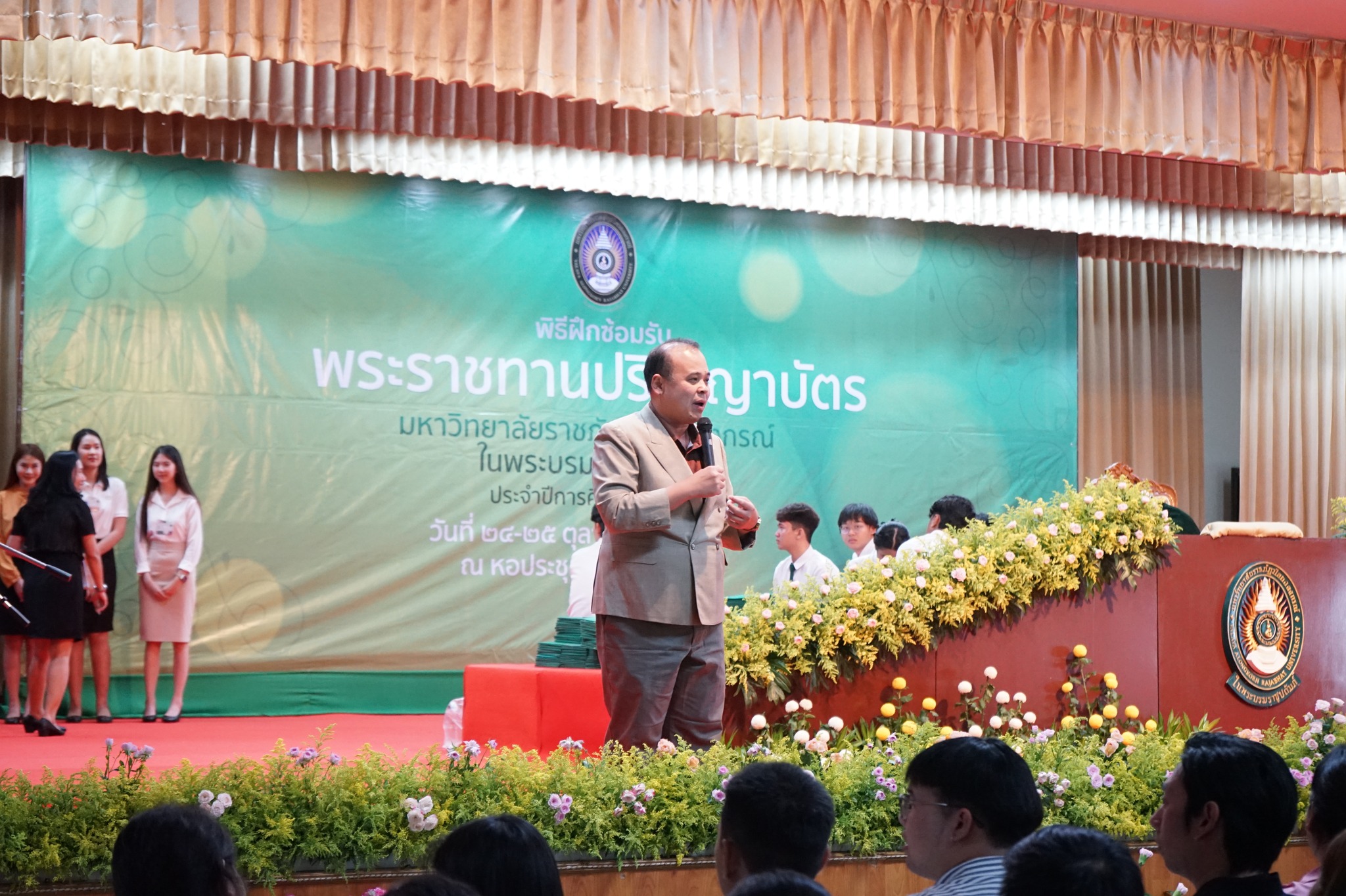 คณะวิทยาศาสตร์และเทคโนโลยี ขอแสดงความยินดีกับบัณฑิตใหม่ ทุกท่าน ภาพบรรยากาศการซ้อมรับพระราชทานปริญญาบัตรวันแรก