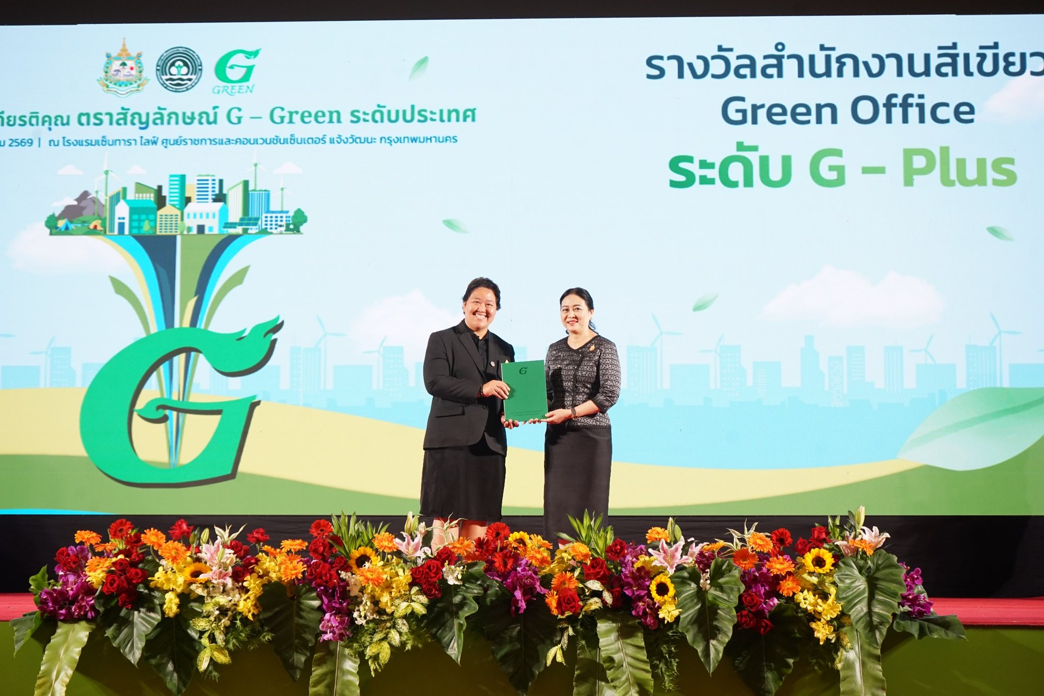 วันจันทร์ที่ 23 มีนาคม 2569 อ.ดร.นพรัตน์ ไวโรจนะ รองคณบดี ร่วมกับ รศ.ดร.นิสา พักตร์วิไล เข้าร่วมงานประกาศเกียรติคุณตราสัญลักษณ์ G - Green ระดับประเทศ ณ โรงแรมเซ็นทารา ไลฟ์ ศูนย์ราชการและคอนเวนชันเซ็นเตอร์ แจ้งวัฒนะ กรุงเทพมหานคร โดยคณะได้ผลการตรวจประเมินสำนักงานสีเขียว (Green Office) ประจำปี 2568 ระดับ Green Office Plus